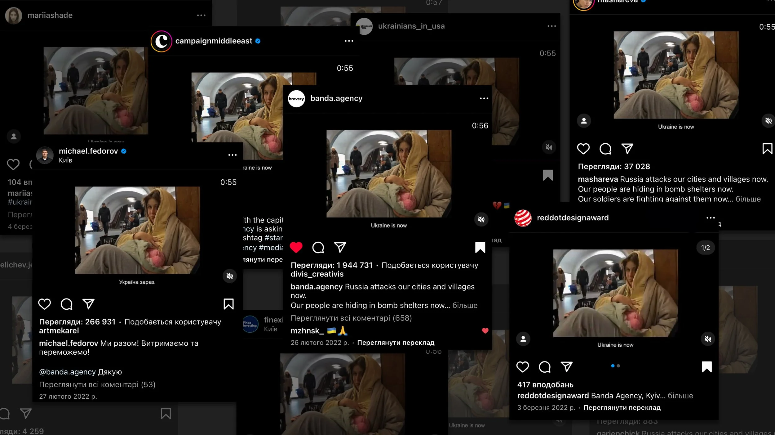 On the third day of the Russian invasion, my fiance Oleksii and I created a film, calling the world to support Ukraine. Thousands of Ukrainians who didn't have time to make original content – too busy fleeing to the safety, hiding from the shelling, and helping each other – used this film as a way to communicate with friends abroad and to spread the word about the war. Our government, ministries, artists, and influencers also shared it to raise international awareness.